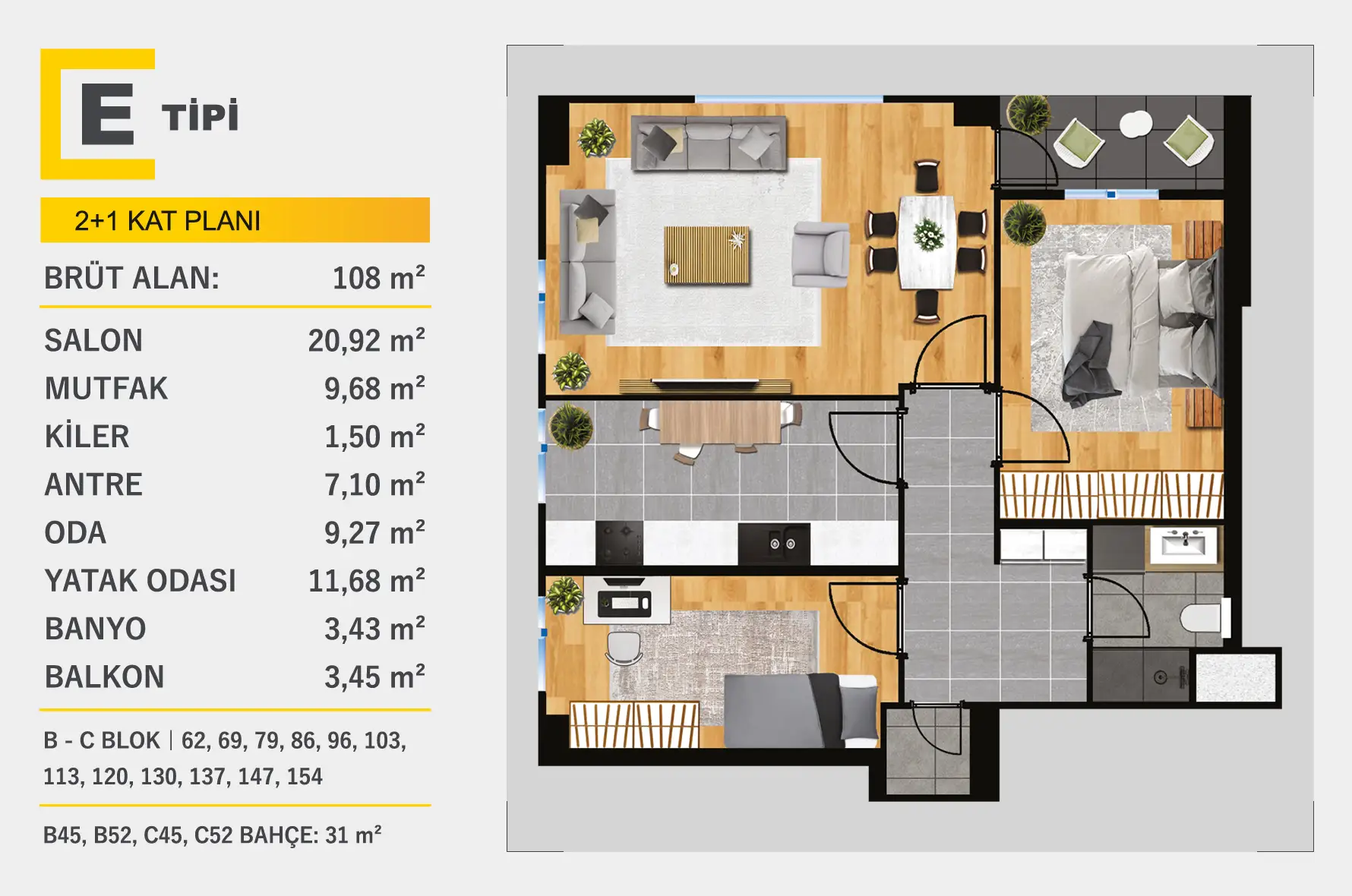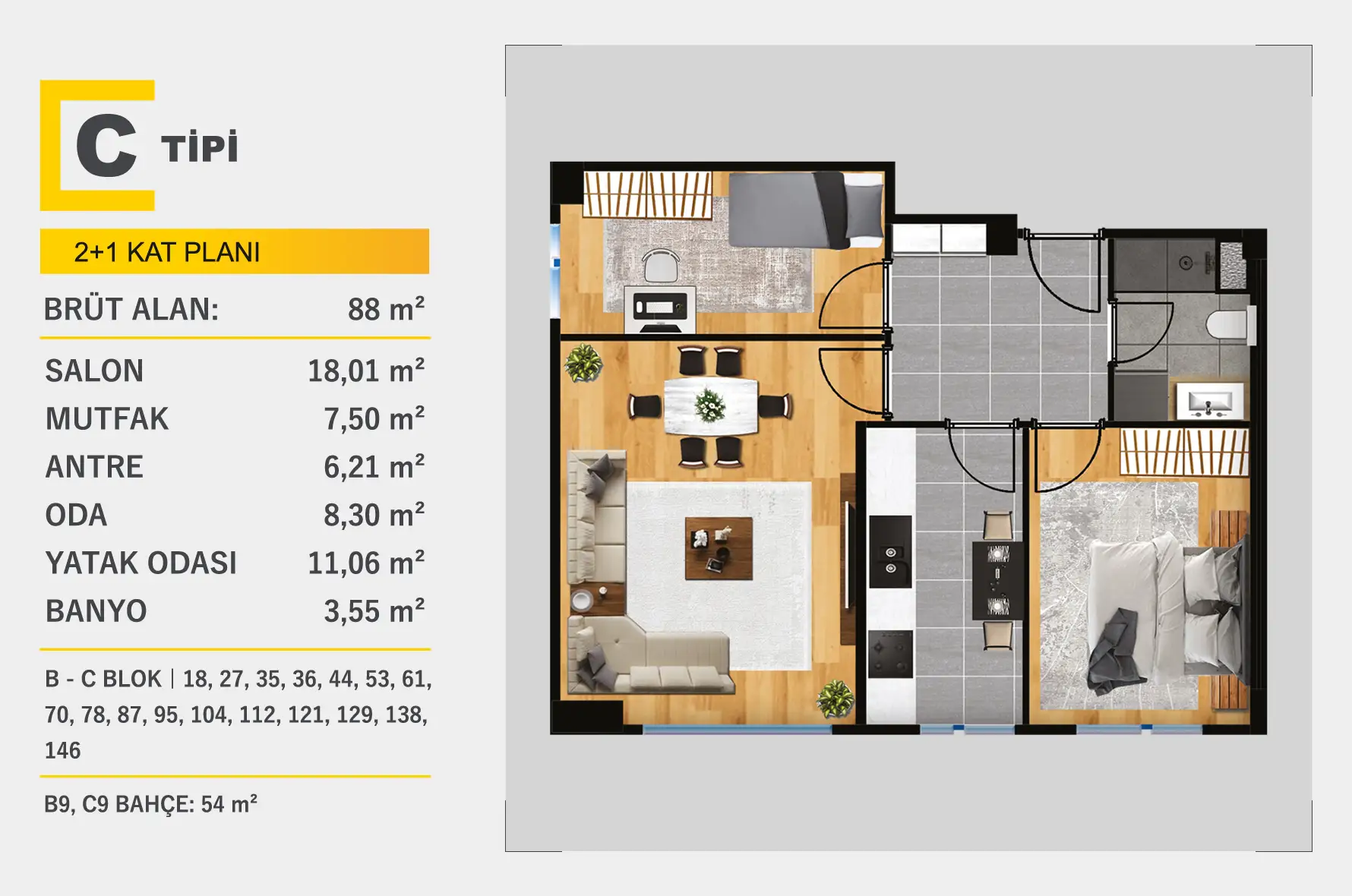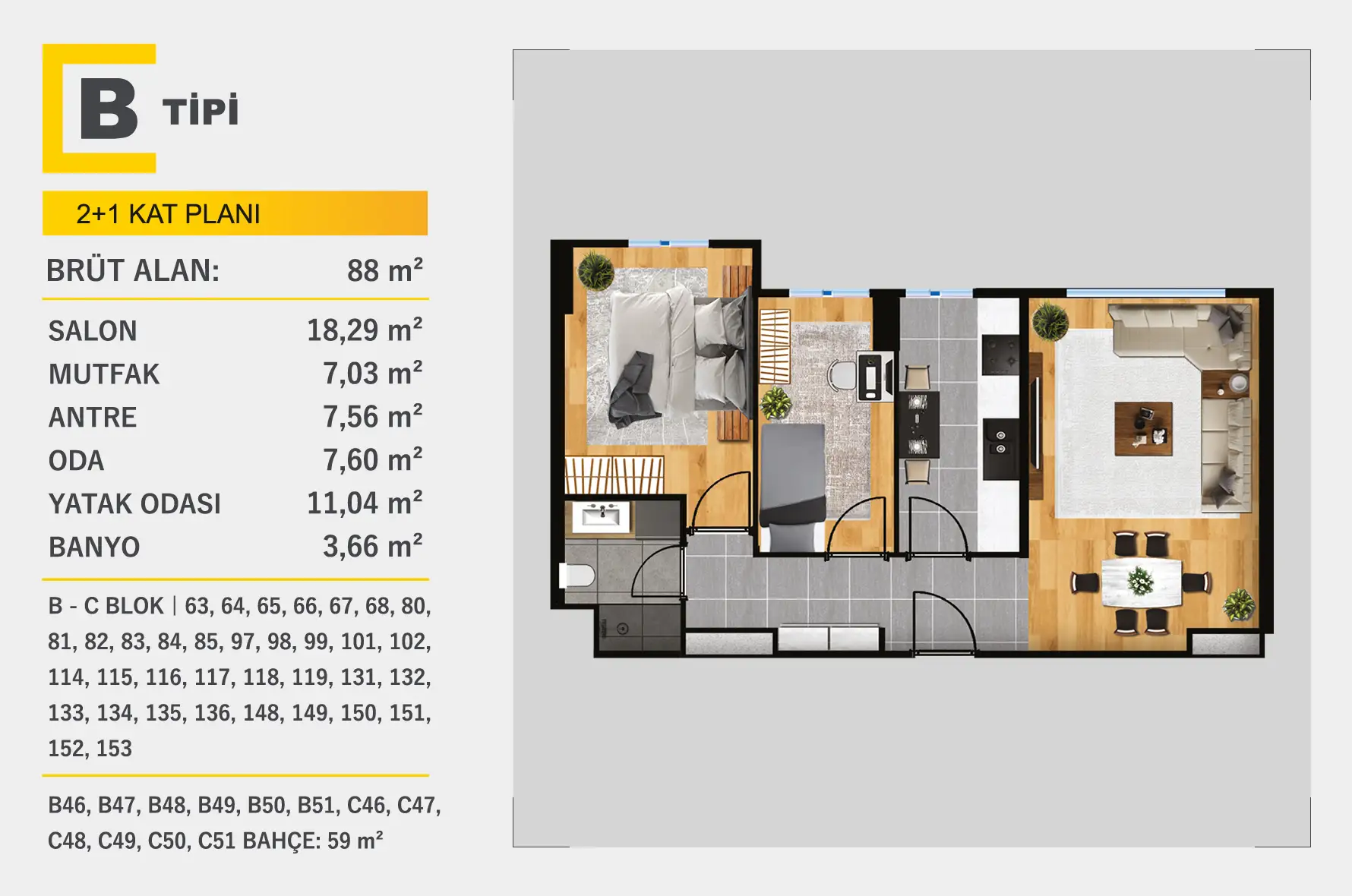 2 + 1 Kat Planları