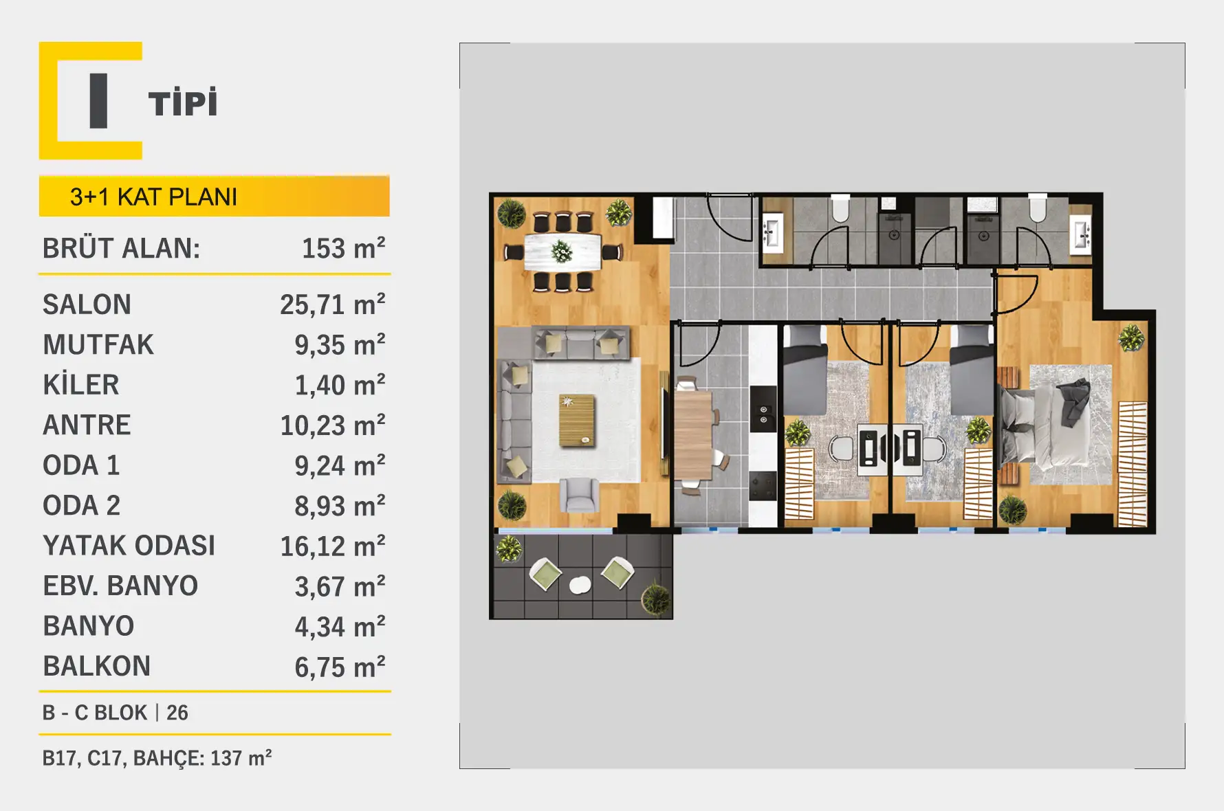 3 + 1 Kat Planları